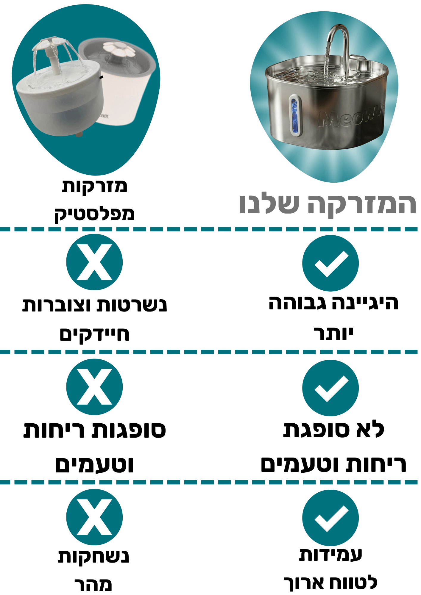 אנחנו בטוחים שהמזרקה שלנו תעודד אורך חיים בריא יותר ותגרום לחתול/ה שלכם לשתות יותר מים. אך אם היא לא עמדה בציפיות שלכם – תקבלו 100% החזר כספי מלא, ללא שאלות!