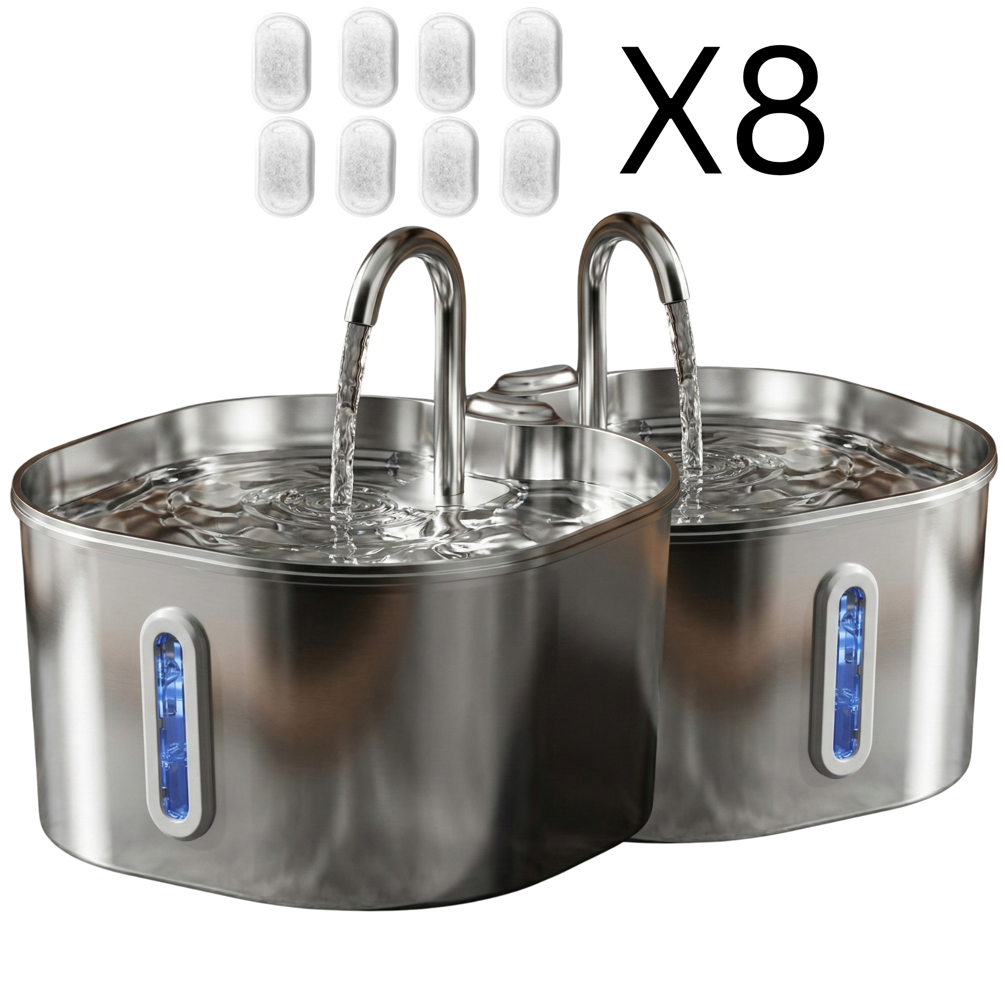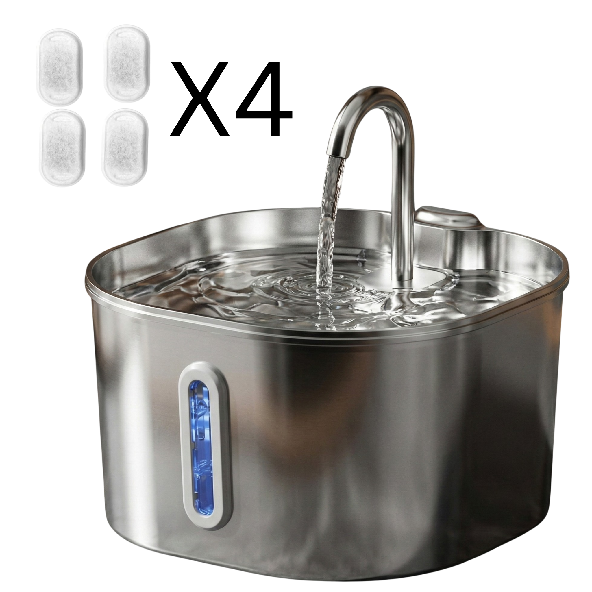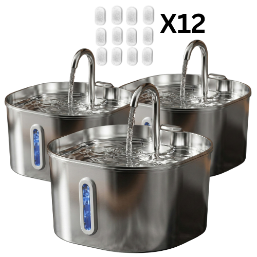 המזרקה כוללת מערכת סינון מתקדמת עם פילטר רב־שכבתי לשמירה על מים נקיים לאורך זמן.