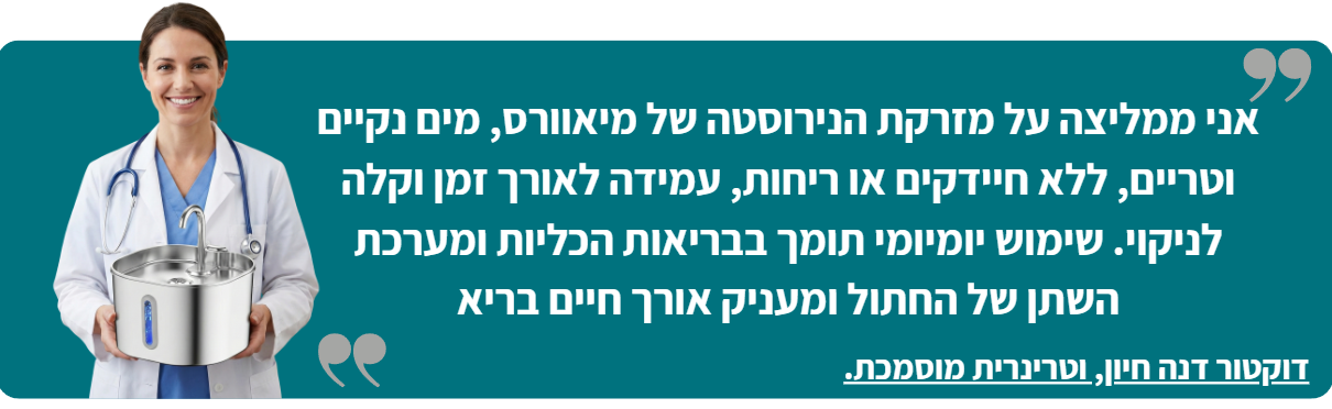 מפעילים — ותוך דקות החתול שותה יותר, ואתם רגועים שהוא מקבל את מה שהוא צריך.